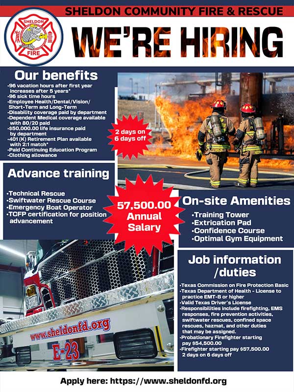 Welcome to the Sheldon Community Fire & Rescue website. We hope to reach out to the community and provide safety tips, fire prevention techniques, and useful resources.